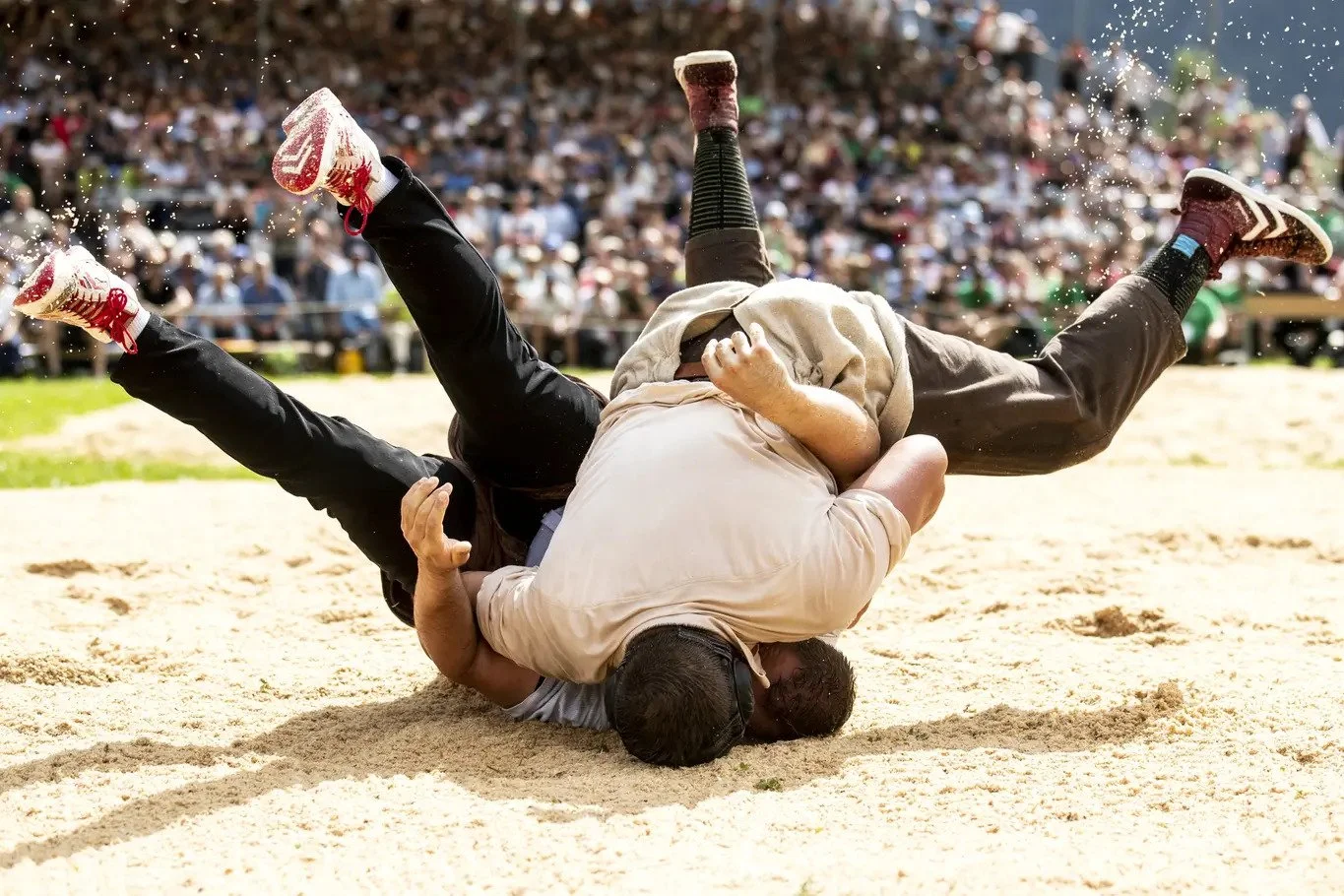 Der amtierende Schwingerkönig holt sich den Sieg nach einem gestellten Schlussgang gegen Pirmin Reichmuth (Foto Monika Bäbler).